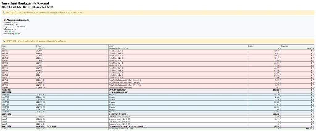 Ez a rendszer egyetlen központi adatbázisban tartja nyilván az összes tulajdonost, albetétet, befizetést és elszámolást. Mit jelent ez Önnek?